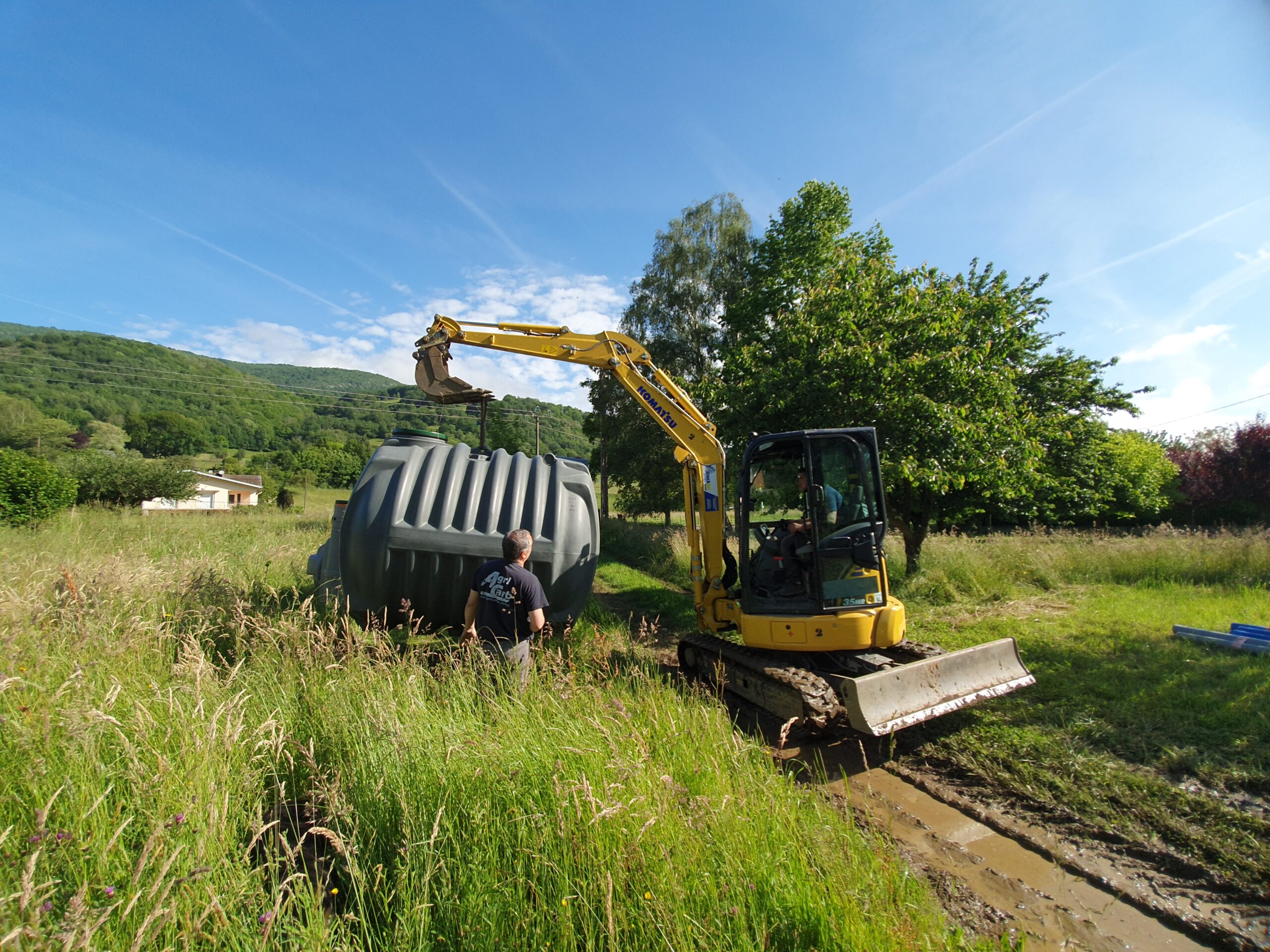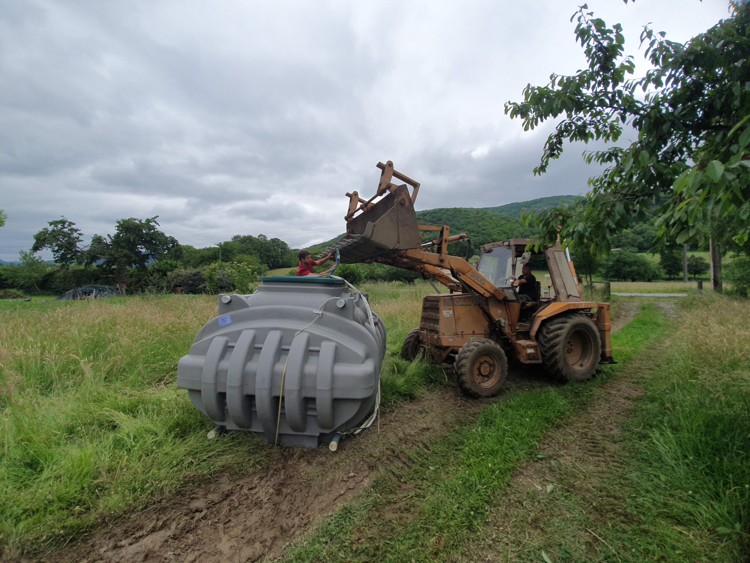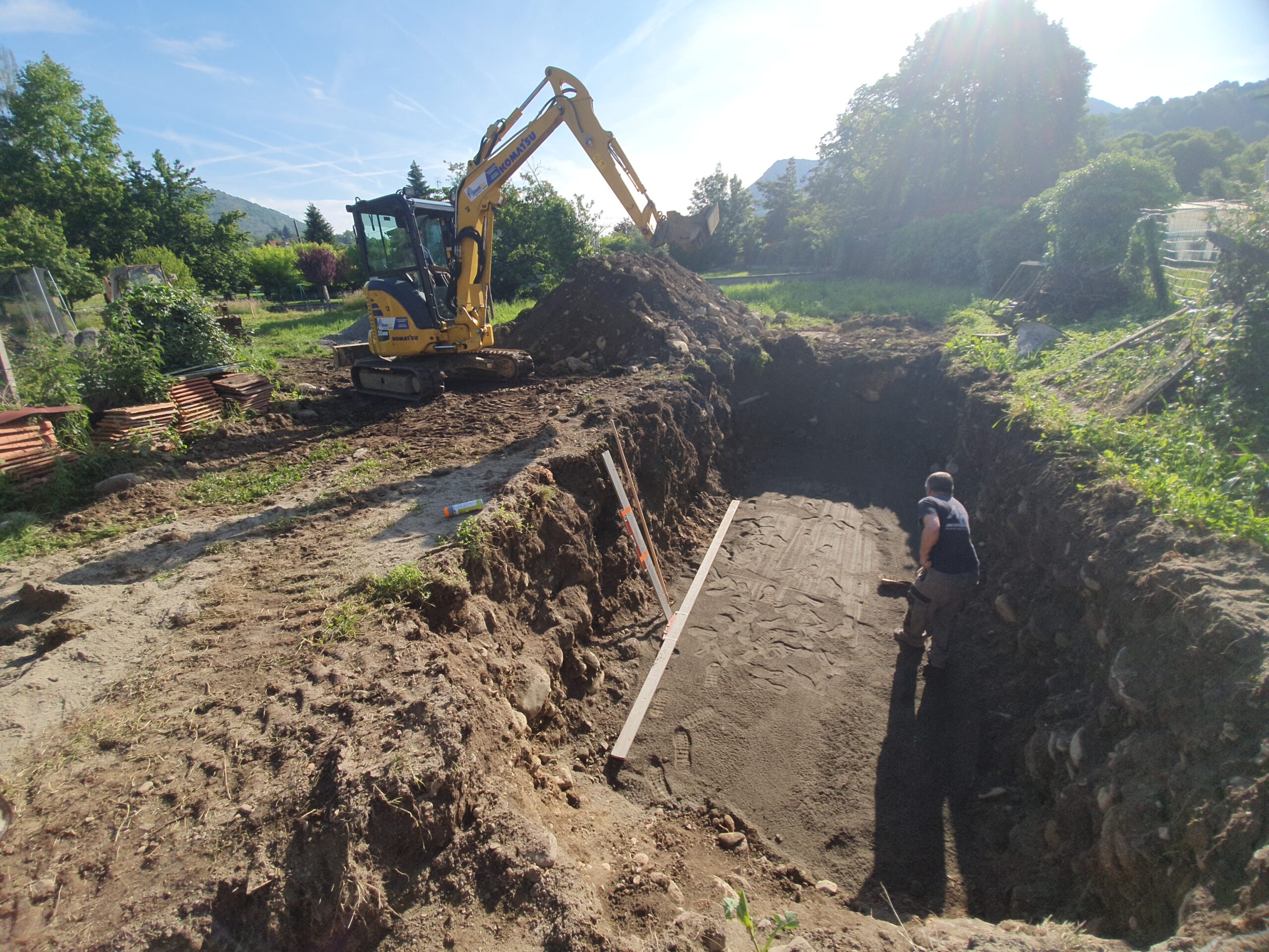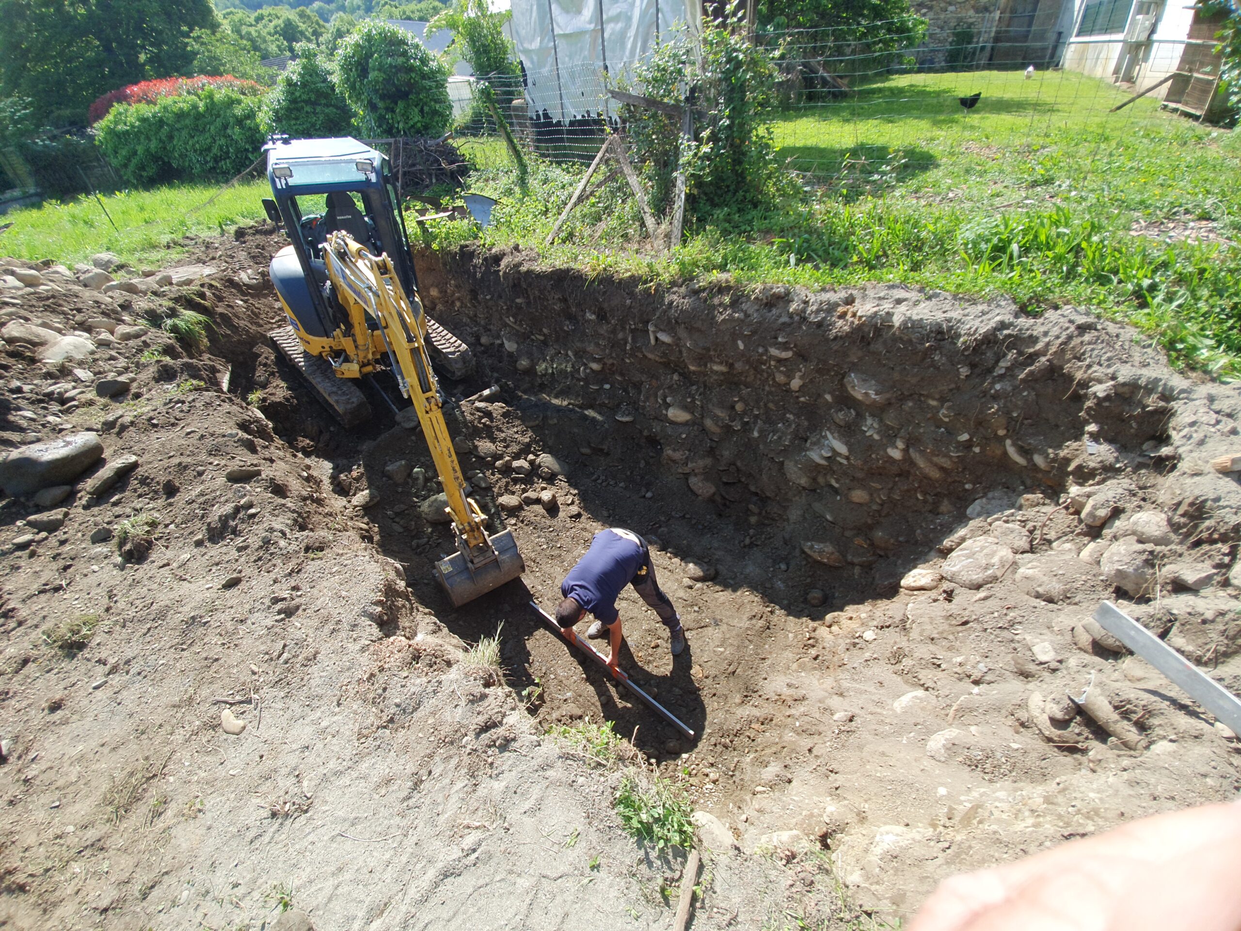 Décaissement du terrain et installation de la fosse septique et du filtre compact