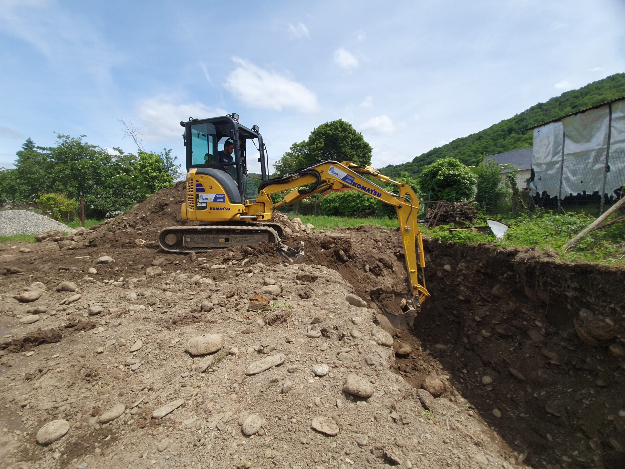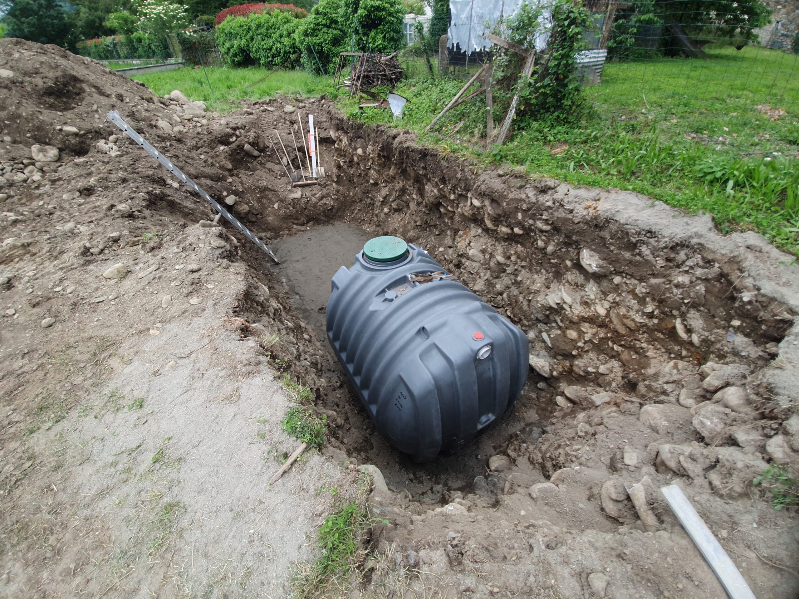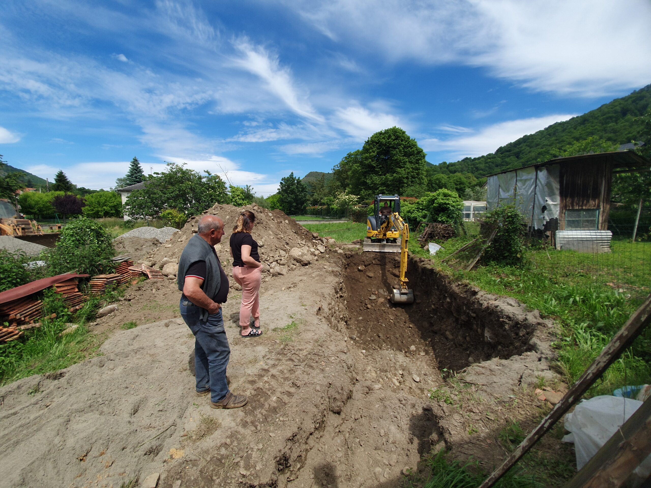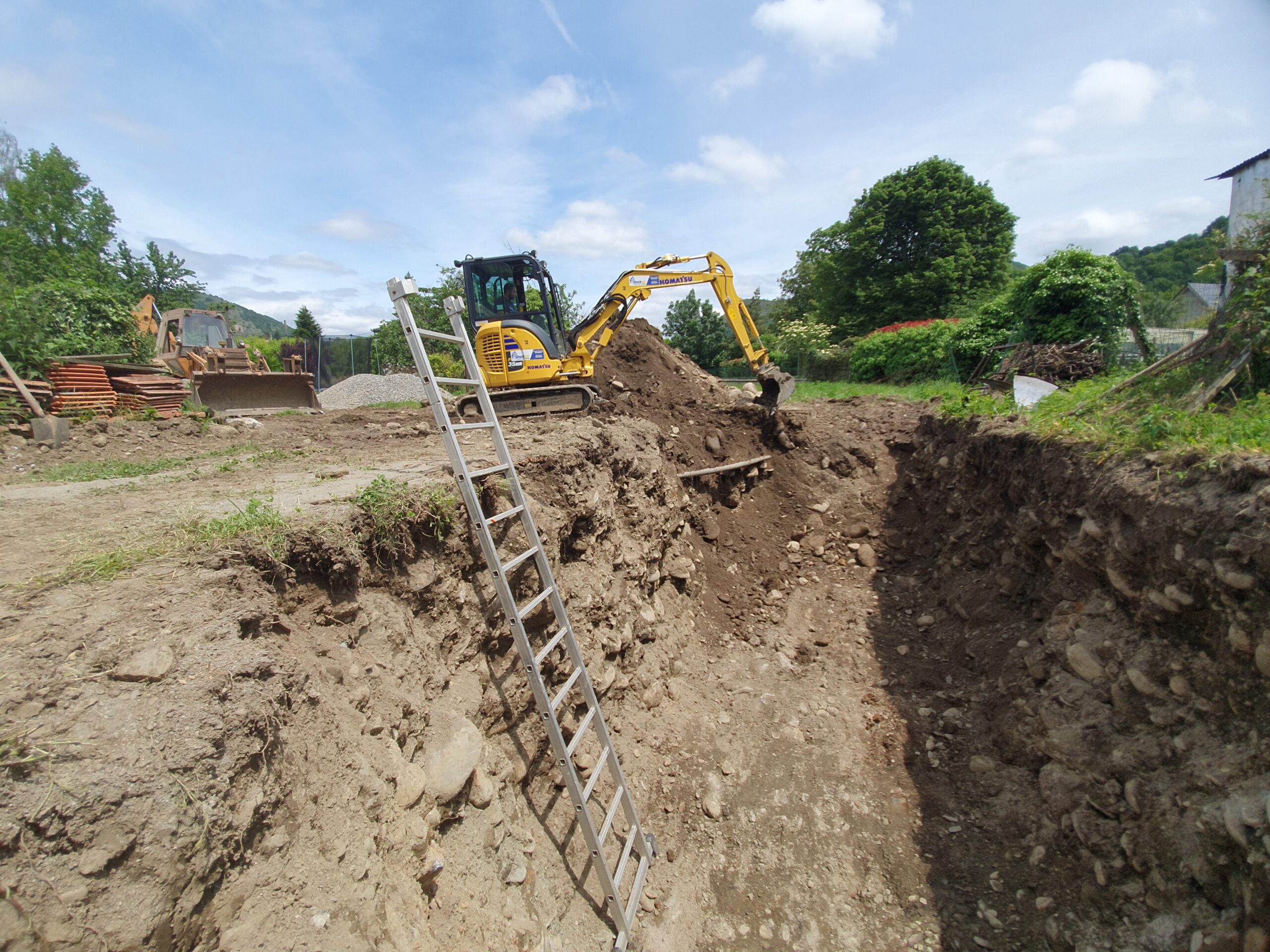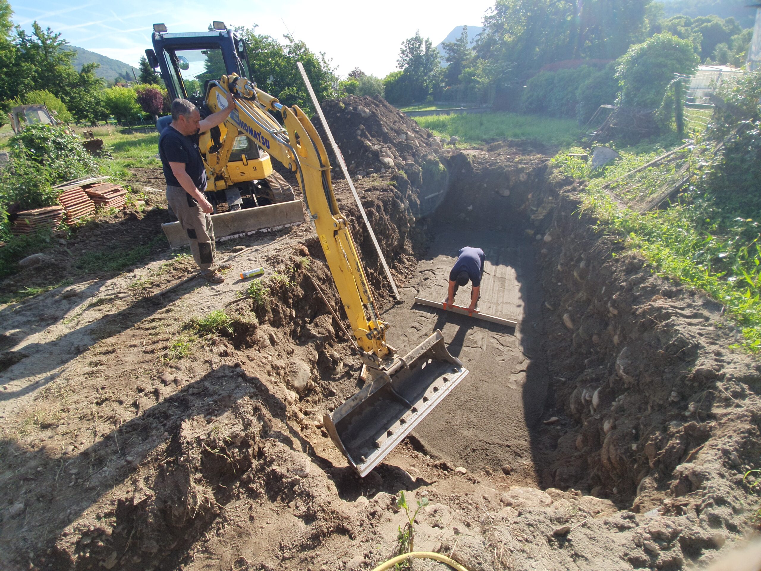 Décaissement du terrain et installation de la fosse septique et du filtre compact