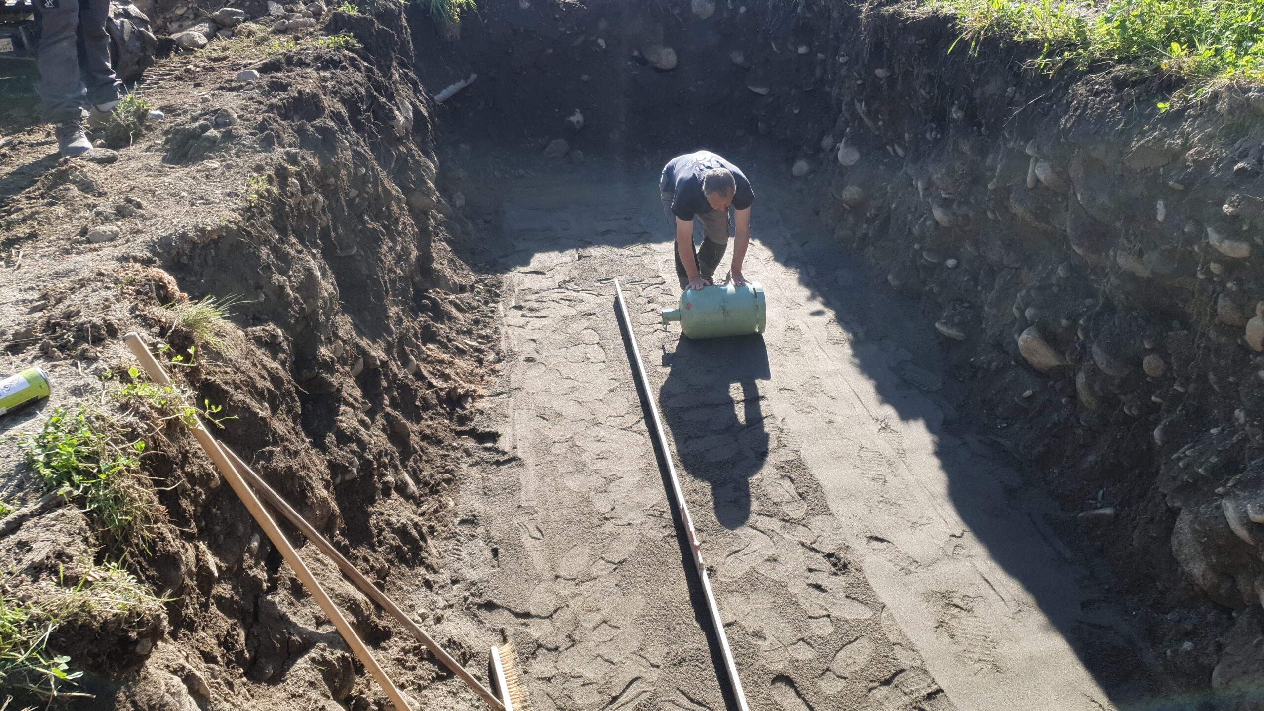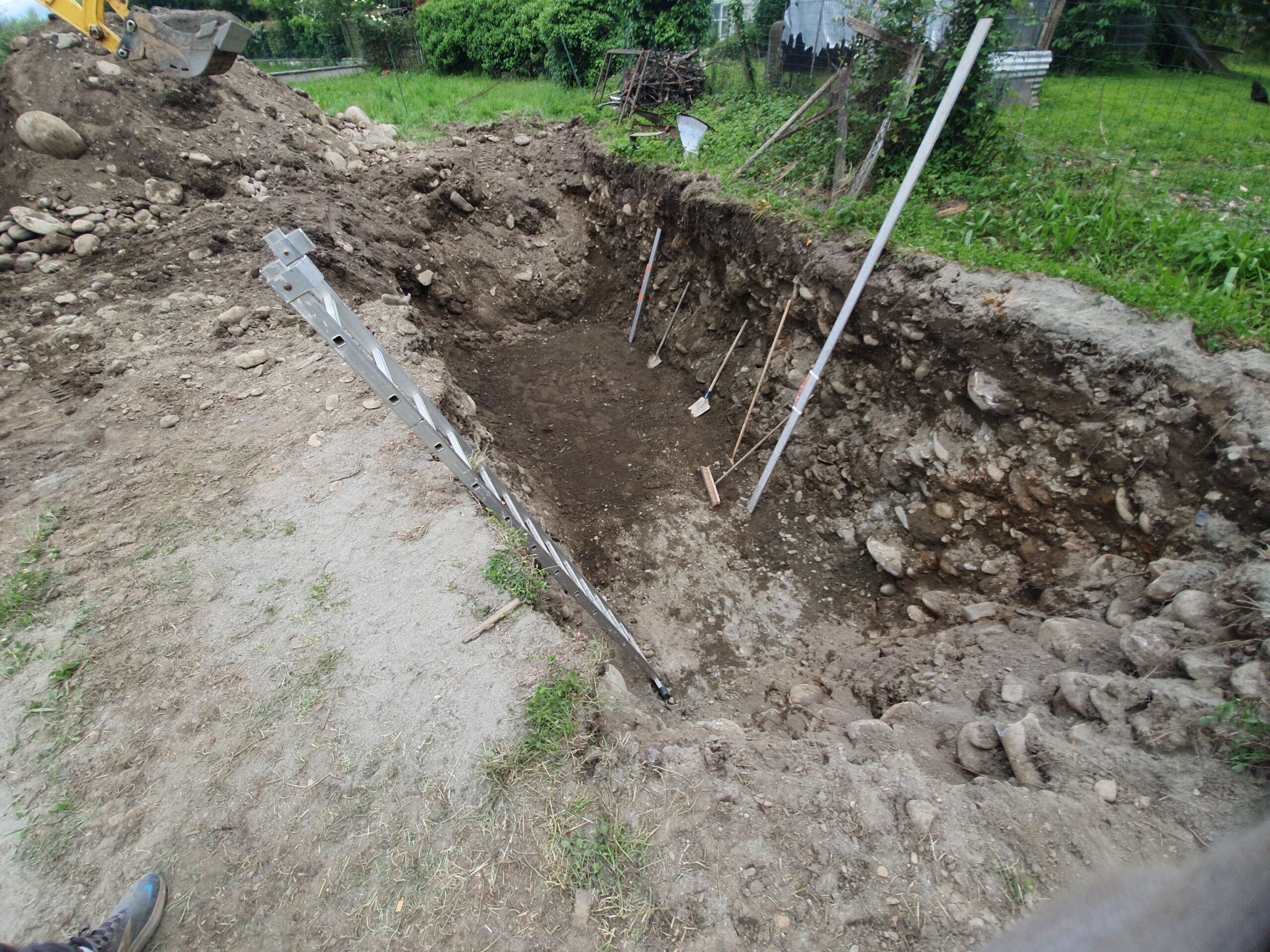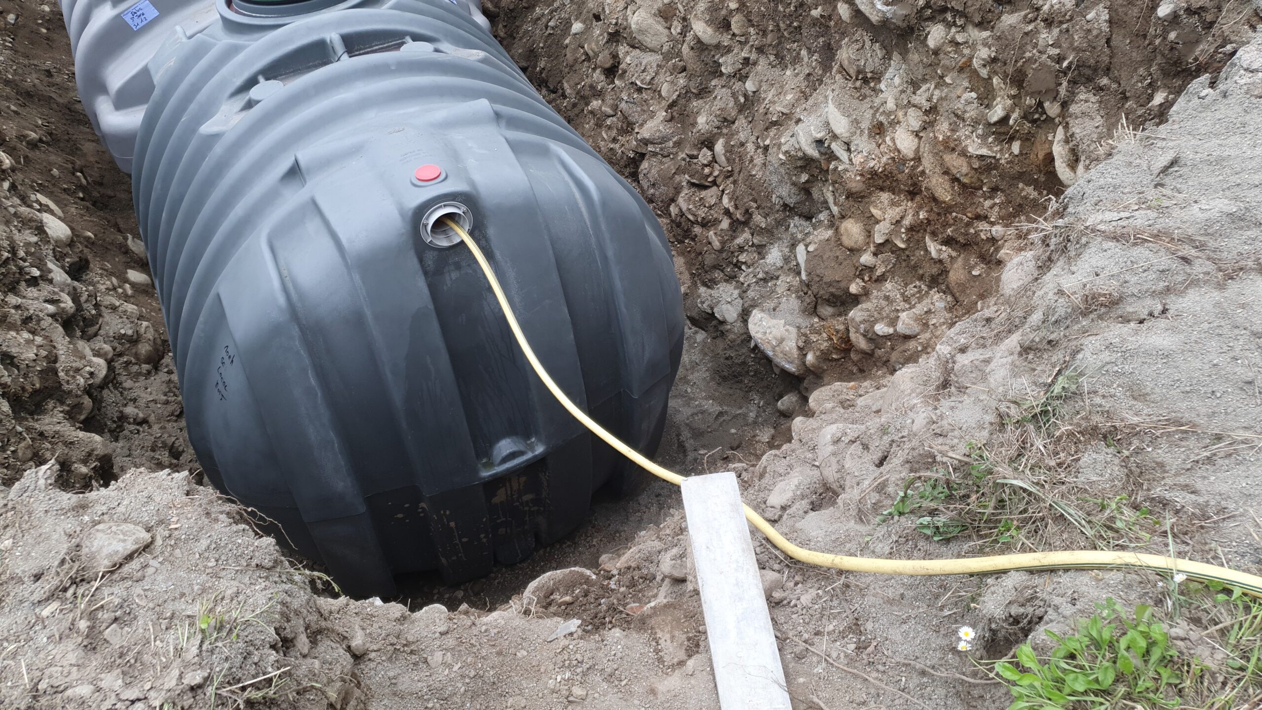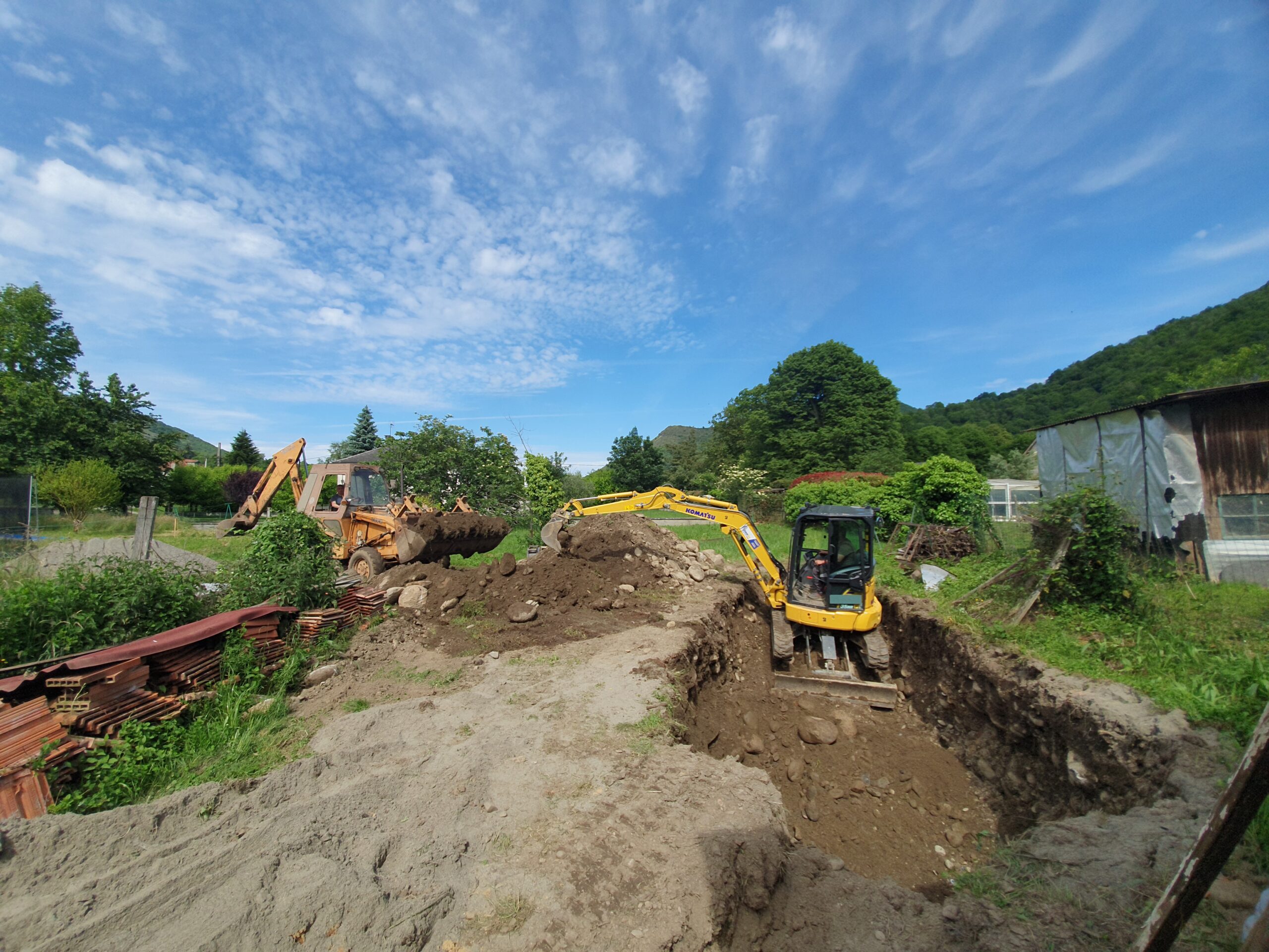 Décaissement du terrain et installation de la fosse septique et du filtre compact