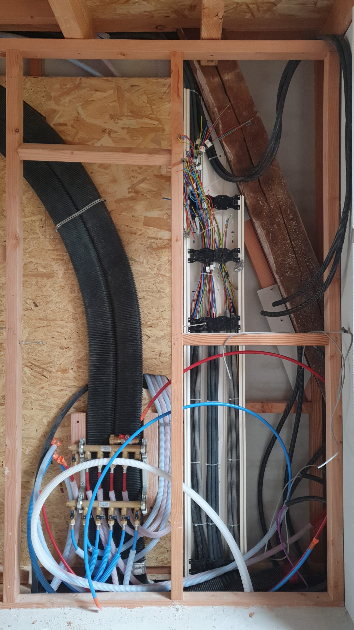 Mur technique pour tableau électrique et communications, collecteur de plomberie, chauffe eau et VMC